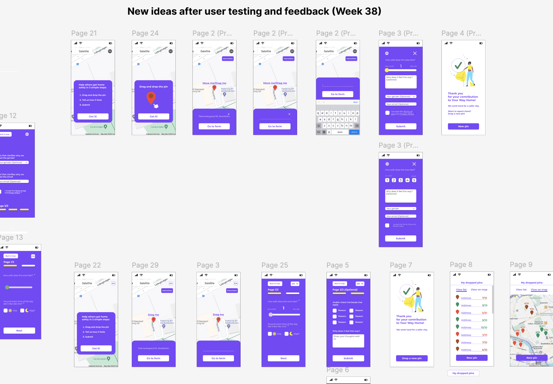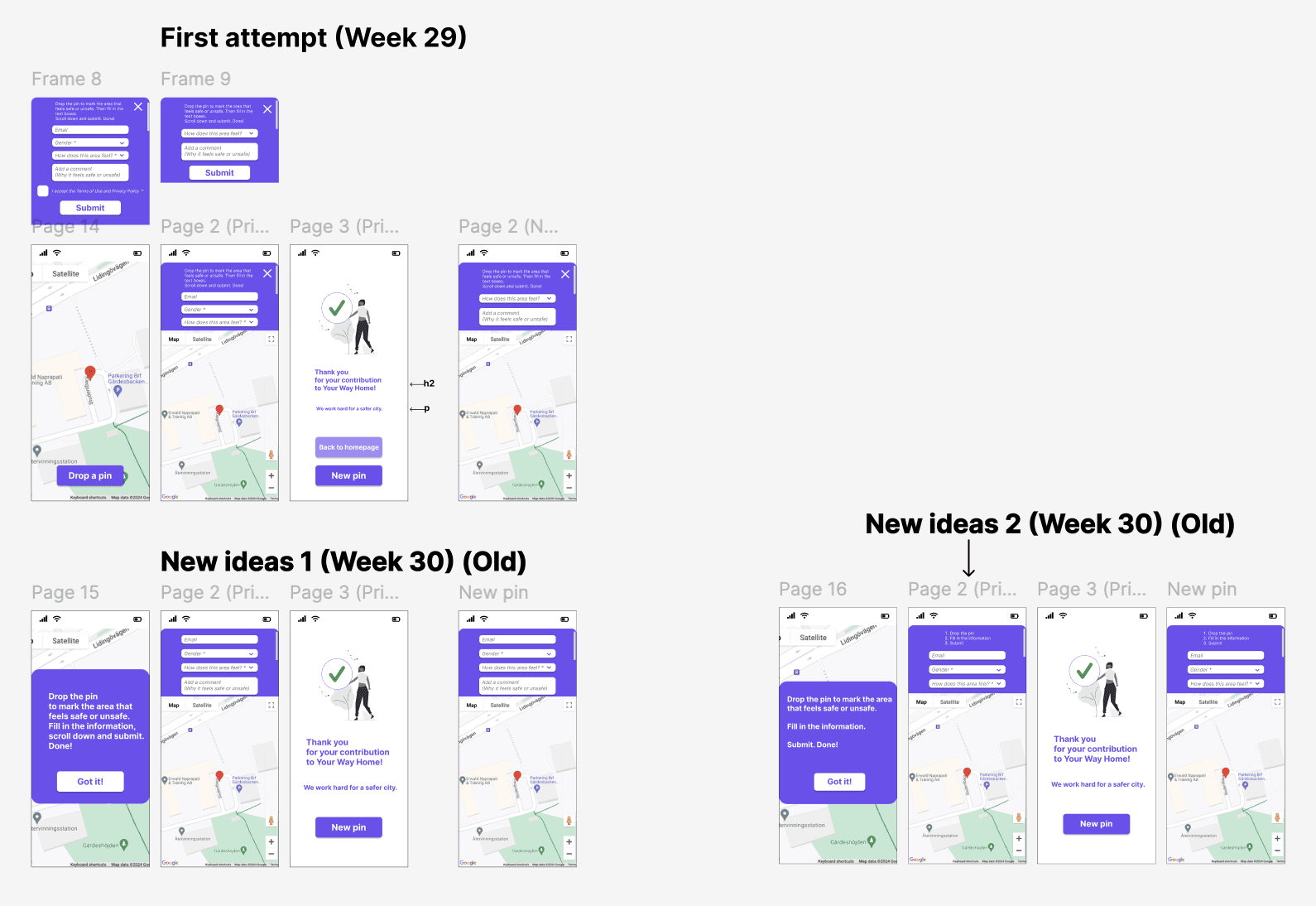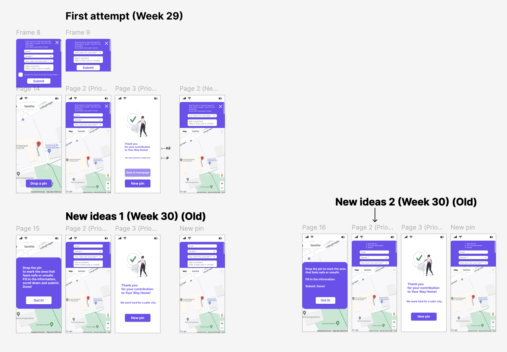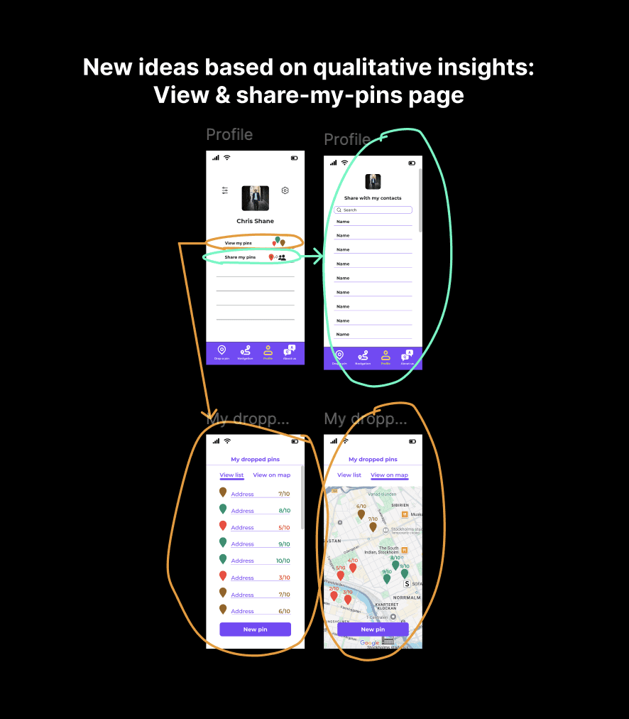 Wireframing and prototyping: People's insights about the interface and the recurring themes helped me with new design ideas for the "Drop-a-pin". Many iterations took place until the launch of the final result.