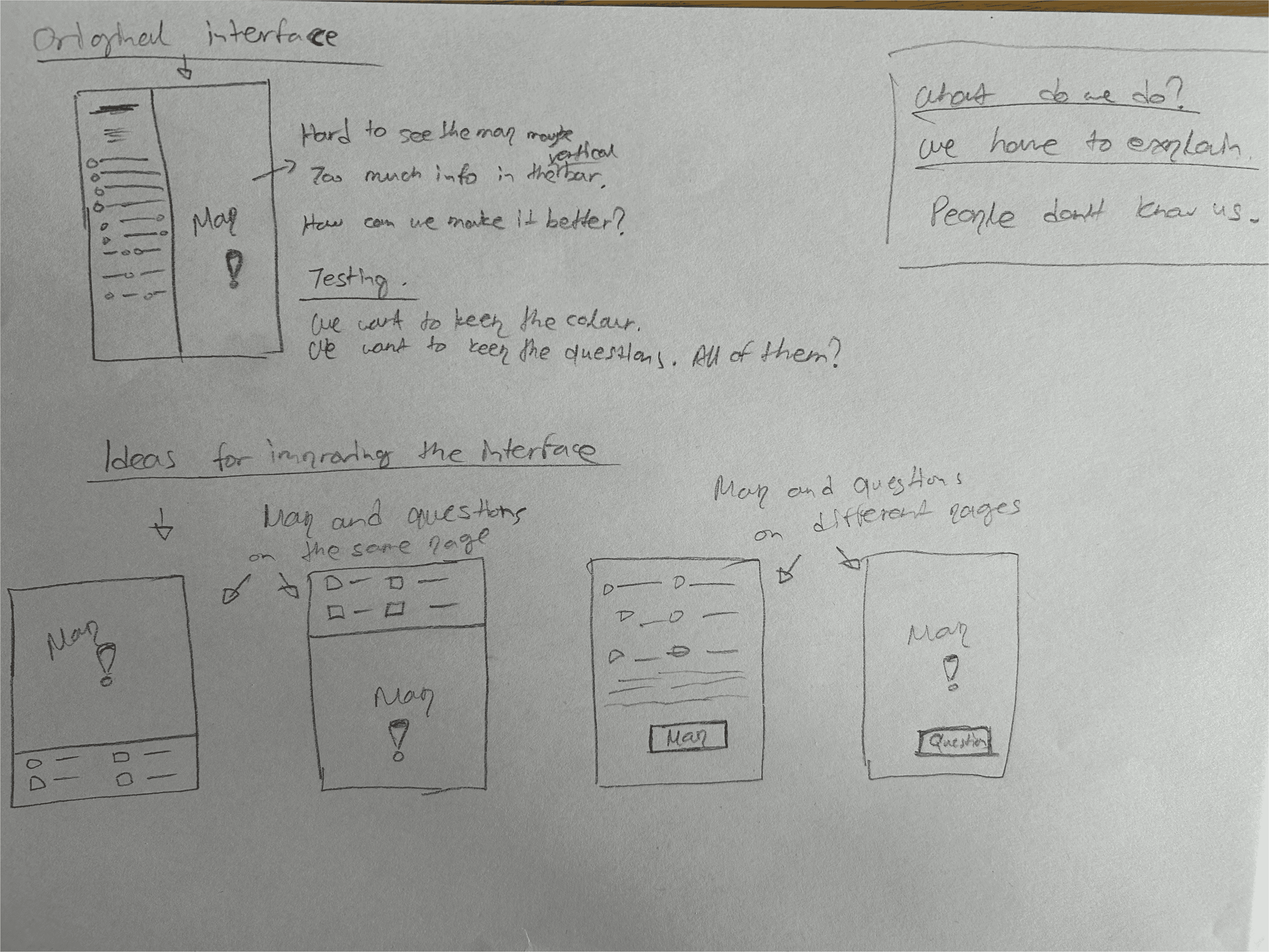 At the same time, I planned the way I would proceed with the process. I started planning interviews for our research process and brainstorming about how we could improve the interface.