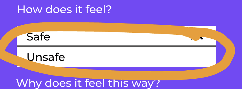 Two options about how a place feels: safe, unsafe.
