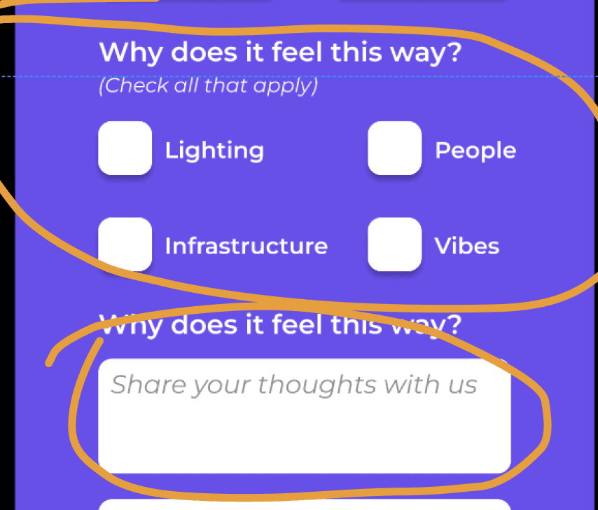 Less boxes and an input where the users could share their thoughts.